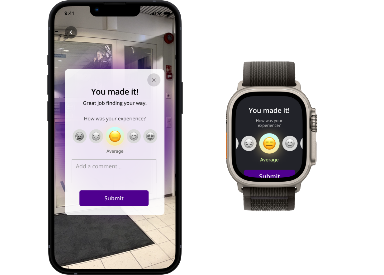 Recognizing the importance of continuous improvement, we added a small feedback mechanism within the destination-reach pop-up. This approach allows users to provide immediate insights into their experience. Our choice was driven by the desire to gather real-time, contextual feedback that can inform future iterations of the application.