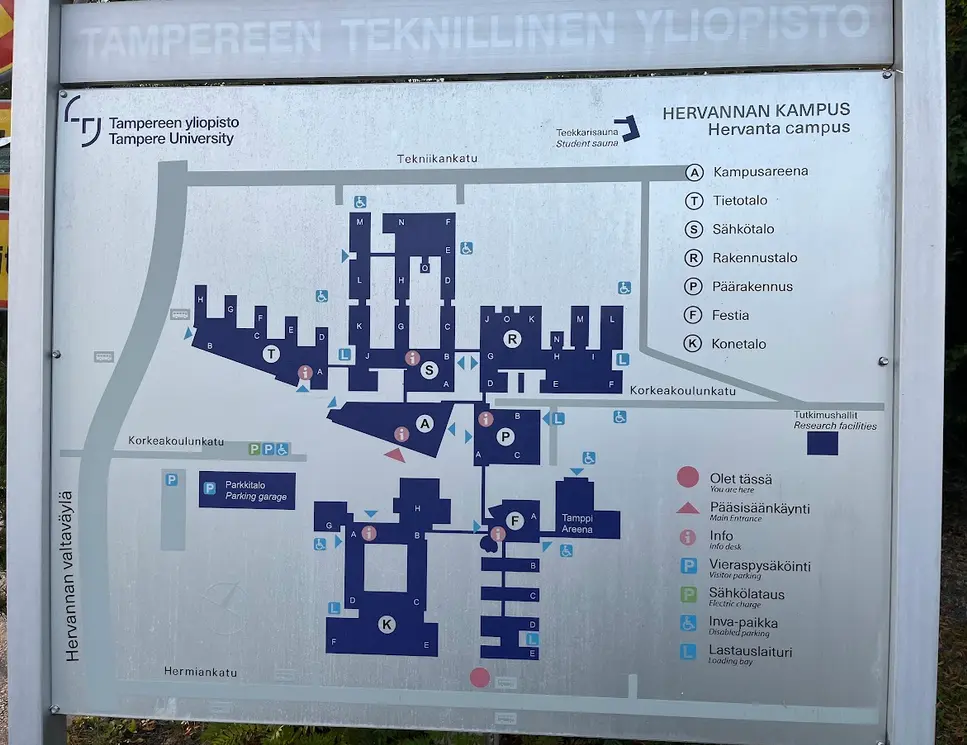 Tampere University operates across multiple campuses with complex building layouts, disconnected entrances, inconsistent naming conventions and Limited indoor GPS reliability.